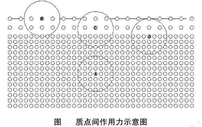 如果以質(zhì)點(diǎn)中心為圓心,10r0為半徑作一球面,顯然只有在這個(gè)球面內(nèi)的質(zhì)點(diǎn)才對(duì)位于球心上的質(zhì)點(diǎn)有作用力。熔體的表面層厚度等于質(zhì)點(diǎn)作用球半徑的一層,在表面層內(nèi)熔體質(zhì)點(diǎn)受力的情況跟熔體內(nèi)部的質(zhì)點(diǎn)的受力情況有所不同。由圖2可見,位于熔體內(nèi)部的質(zhì)點(diǎn)A受到周圍對(duì)稱分布的質(zhì)點(diǎn)的作用,其合力為0。熔體表面層質(zhì)點(diǎn)上下分布對(duì)稱性被打破,處于表層內(nèi)的熔體質(zhì)點(diǎn)B、C和D都受到了一個(gè)指向熔體內(nèi)部的力的作用從而向熔體內(nèi)部移動(dòng),使得質(zhì)點(diǎn)間距離減小,引力轉(zhuǎn)化為斥力,最終到達(dá)平衡狀態(tài)。在平行熔體表面的方向,熔體表面層內(nèi)的質(zhì)點(diǎn)分布是均勻的,只是間距比較大,質(zhì)點(diǎn)間作用力表現(xiàn)為引力,這便是熔體的表面張力。由于表面張力的作用,質(zhì)點(diǎn)之間的距離減小,使得熔體表面積減小,而一定體積的熔體中球體的表面積最小,所以熔體表面有形成球面的趨勢,但這種趨勢會(huì)受重力的影響而改變。重力是所有組成熔體的質(zhì)點(diǎn)所受的力的合力,而表面張力只是表面一層質(zhì)點(diǎn)間的引力,表面張力相對(duì)于重力而言微乎其微,所以對(duì)于大體積的熔體,重力作用遠(yuǎn)大于表面張力作用,液面呈現(xiàn)平面。對(duì)于小體積熔體來說,組成熔體總的質(zhì)點(diǎn)數(shù)較少,表面張力已接近重力,甚至超過重力,使得液面呈現(xiàn)弧形甚至球形。上述的釉滴實(shí)驗(yàn)可以證實(shí)這點(diǎn)。