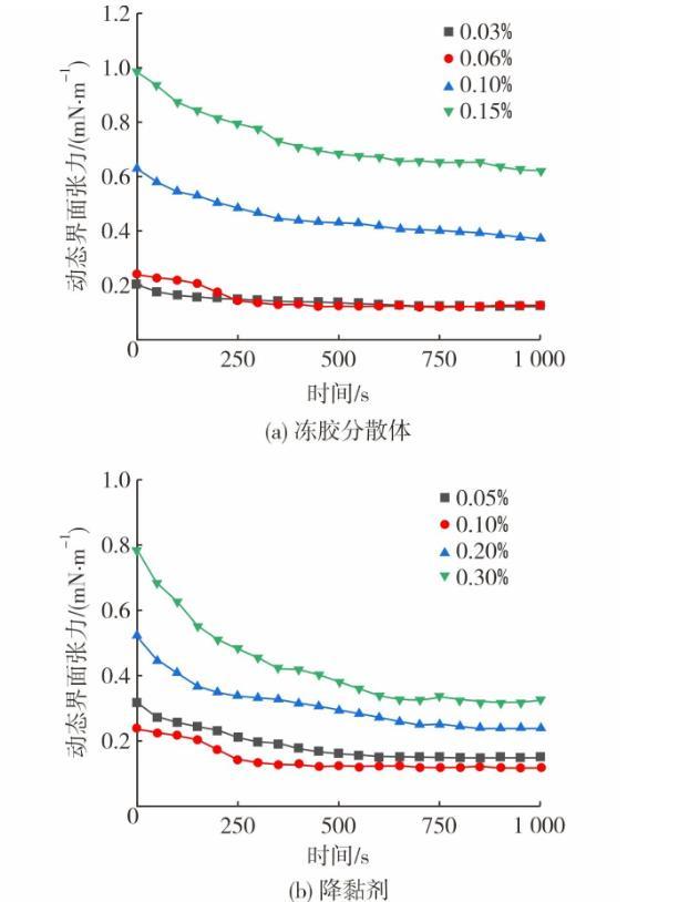稠油冷降黏劑&采凍膠分散體調驅復配體系對其動態(tài)界面張力的影響