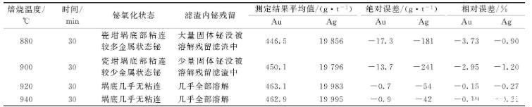 粗鉍是鉍精煉過(guò)程中的中間產(chǎn)物,粗鉍中含有鉛、銀、金、砷、銻、碲等[1],準(zhǔn)確測(cè)定粗鉍中金、銀含量對(duì)于指導(dǎo)生產(chǎn)和回收貴金屬具有重要意義。高鉍物料中金、銀測(cè)定一般沿用火試金重量法[2-3],主要是控制試料中鉍的含量,減少鉍對(duì)火試金的影響,為了減少合粒中鉍的殘留,消除鉍圈對(duì)合粒影響,控制樣品中鉍含量為0.50 g為宜[4-6],對(duì)于粗鉍來(lái)說(shuō),稱樣量太小,不能準(zhǔn)確測(cè)定樣品中金、銀含量。實(shí)驗(yàn)證明可以先把鉍焙燒氧化,然后用乙酸除去鉍氧化物中的鉍[7-8],再用火試金重量法測(cè)定物料中金、銀含量[5]。本方法精密度高,準(zhǔn)確度好,可用于粗鉍中金、銀含量的測(cè)定。