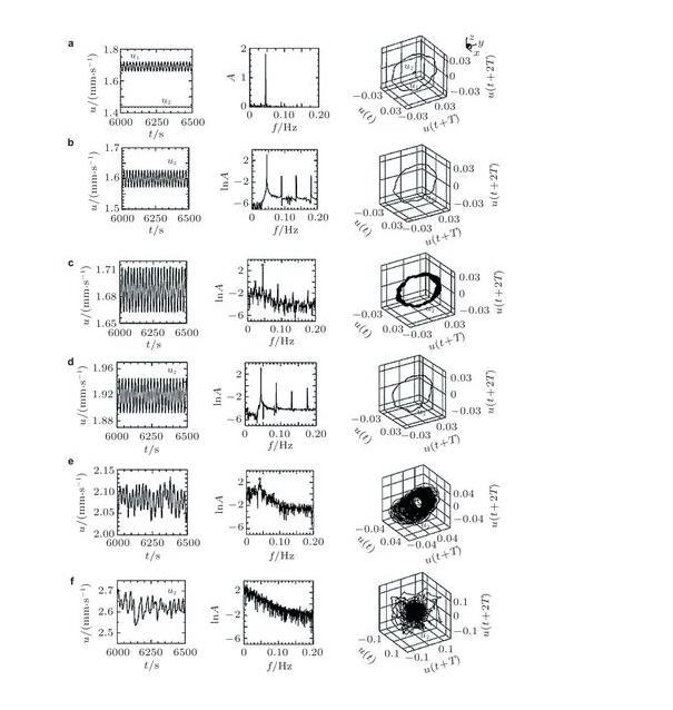 (4)目前對(duì)于液層界面張力梯度驅(qū)動(dòng)對(duì)流向湍流轉(zhuǎn)捩的研究仍不夠完善,在對(duì)超臨界轉(zhuǎn)捩階段的實(shí)驗(yàn)及數(shù)值模擬研究中觀察到了許多復(fù)雜的轉(zhuǎn)捩模式,但大多只是現(xiàn)象上的描述,并未總結(jié)出普遍的規(guī)律;對(duì)于流動(dòng)最終能否通向混沌暫無(wú)普適的判據(jù),流動(dòng)通向混沌過(guò)程中出現(xiàn)的諸如陣發(fā)、鎖頻等特殊的現(xiàn)象也尚未有更本質(zhì)的機(jī)理上的解釋??傊?,對(duì)于轉(zhuǎn)捩規(guī)律的深入理解,需要界面張力梯度驅(qū)動(dòng)對(duì)流這一非線性模型在理論上的進(jìn)一步發(fā)展,未來(lái)道阻且長(zhǎng)。