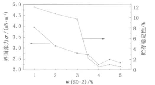 圖1乳化劑用量對界面張力和貯存穩(wěn)定性界面張力的影響