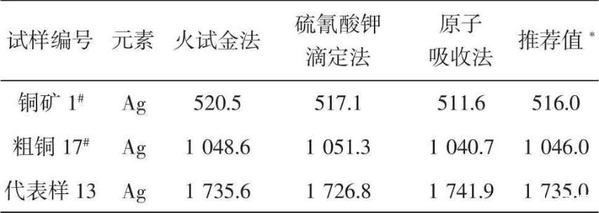 按試驗(yàn)方法,用不同含量的銅物料樣品進(jìn)行分析,并與其它測(cè)定銀元素方法的分析結(jié)果對(duì)照,結(jié)果見表4。