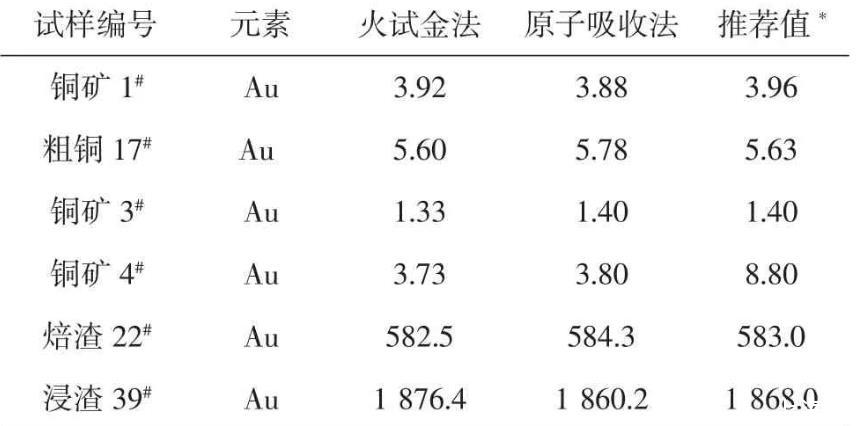 按試驗(yàn)方法,用不同含量的銅物料樣品進(jìn)行分析,并與其它測(cè)定金元素方法的分析結(jié)果對(duì)照,結(jié)果見表5。