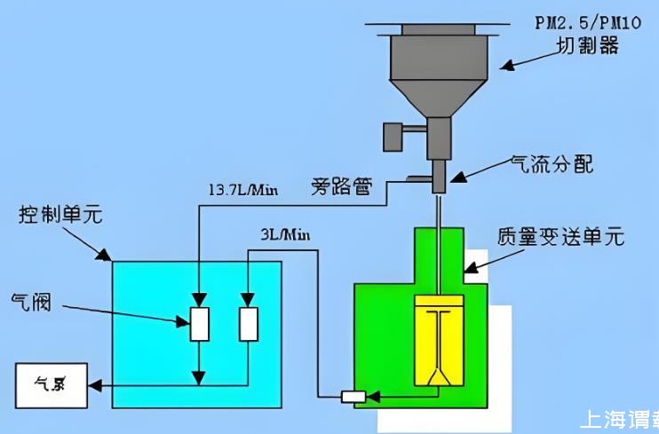 測量原理是基于錐形元件振蕩微量天平原理,核心部件為錐形元件振蕩器。錐形元件振蕩器在其自然頻率下振蕩,振蕩頻率由振蕩器件的物理特性、參加振蕩的濾膜質量和沉積在濾膜上的顆粒物質量決定。儀器通過采樣泵和流量計,使環(huán)境空氣以一恒定的流量通過采樣濾膜,顆粒物則沉積在濾膜上。測量出一定間隔時間前、后的2個振蕩頻率,就能計算出在這一段時間里收集在濾膜上顆粒物的質量,再除以流過濾膜的空氣的總體積,得到這段時間內空氣中顆粒物的平均濃度。