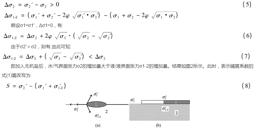 圖2無機(jī)鹽對各界面張力影響及液/液鋪展示意圖
