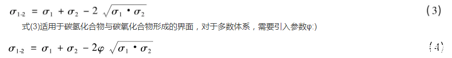 式中φ是與兩液體的摩爾體積及分子間相互作用有關(guān)的參數(shù)。根據(jù)經(jīng)驗(yàn),φ值一般為0.5~1.5。對于水與脂肪酸、醇、醚、酮接觸的體系,其值近似為1;水與飽和烴接觸的體系,其值約為0.55;水與芳烴接觸體系的值約為0.7。