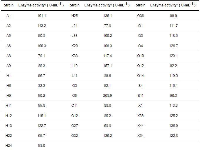表1已分離的40株菌所產(chǎn)β-甘露聚糖酶的酶活力