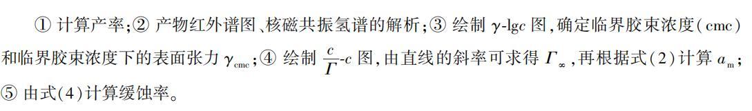 了解Gemini表面活性劑的發(fā)展現(xiàn)狀;于掌握陽(yáng)離子型Gemini表面活性劑BQAS的合成及純化方法;了解結(jié)構(gòu)表征的原理和方法;掌握表面性能和緩蝕性能的評(píng)價(jià)方法。