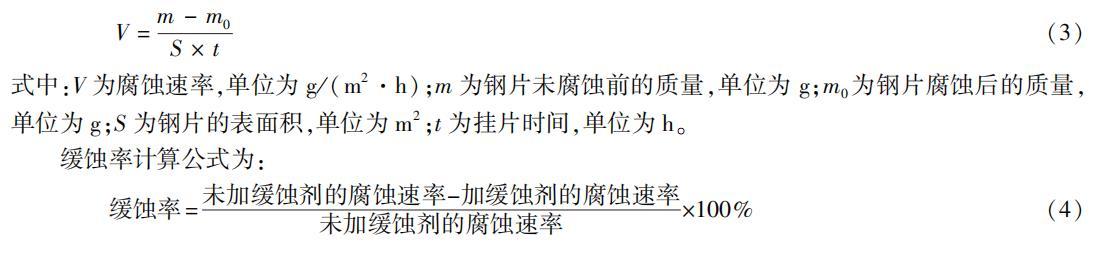 用毛刷和紗布擦拭鋼片表面的腐蝕產(chǎn)物,然后用自來(lái)水沖洗干凈,用醫(yī)用紗布擦干。將鋼片依次放入石油醚、丙酮、無(wú)水乙醇中各浸泡5min,取出鋼片用綢子擦拭,然后用冷風(fēng)吹干,放入干燥器中干燥4h以上。在分析天平上準(zhǔn)確稱(chēng)重(精確至0.1mg)并記錄。