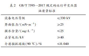 表2GB/T7595—2017規(guī)定的運行中變壓器