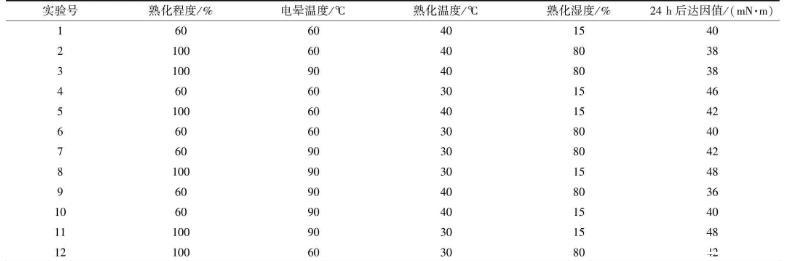 表2熟化前電暈影響因素正交試驗(yàn)設(shè)計(jì)