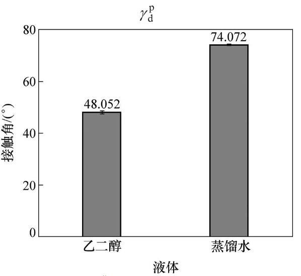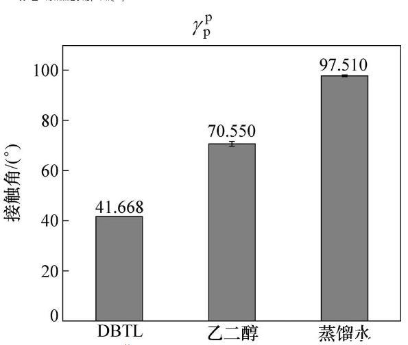 調(diào)和平均法計算CBT500與DBTL界面張力(12),CBT500、DBTL表面張力()、極性分量(p)、色散分量(d)研究是基礎(chǔ)。CBT500色散分量、極性分量通過引入2種測試液體求解二元二次方程組,DBTL色散分量、極性分量通過研究DBTL在PP薄板上靜態(tài)接觸角并結(jié)合表面張力是材料極性分量、色散分量之和進(jìn)行二元二次方程組求解。
