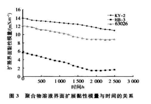 圖3聚合物溶液界面擴(kuò)展黏性模量與時間的關(guān)系