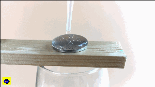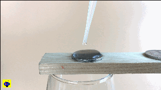 正是由于這個(gè)力,硬幣上的水滴能夠凸起來,在極限值到來之前,液滴都不會倒塌。
