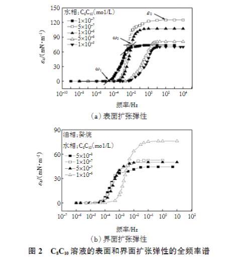 圖2 C8C10溶液的表面和界面擴(kuò)張彈性的全頻率譜