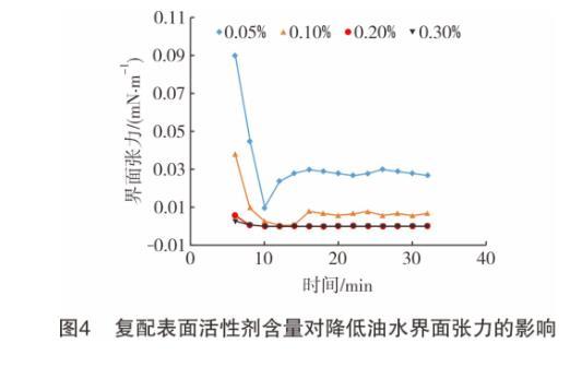 2.4復(fù)配表面活性劑含量對降低油水界面張力的影響