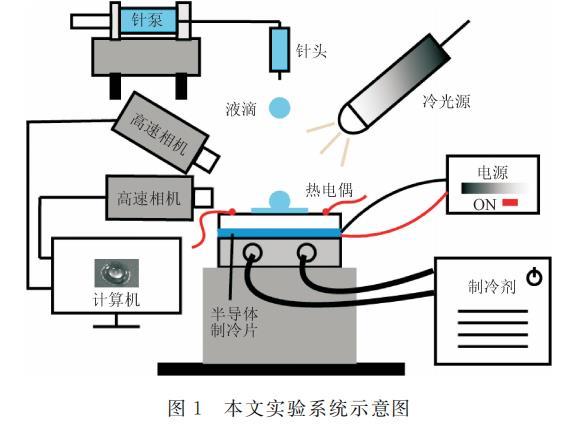 盡管如此,目前針對(duì)低表面張力液滴沖擊過(guò)冷水平壁面的研究仍有所欠缺。液滴在過(guò)冷表面上的沖擊和應(yīng)用在生活中也十分常見(jiàn),例如噴霧凍結(jié)、高空中的過(guò)冷水滴沖擊機(jī)翼導(dǎo)致結(jié)冰、過(guò)冷噴涂等。本文針對(duì)乙醇液滴沖擊過(guò)冷親水水平壁面這一基本物理現(xiàn)象開(kāi)展實(shí)驗(yàn),針對(duì)其鋪展動(dòng)力學(xué)行為進(jìn)行分析與討論,旨在探究低表面張力對(duì)液滴沖擊過(guò)冷水平壁面的鋪展動(dòng)力學(xué)行為的影響。這一研究有助于加深對(duì)固液接觸現(xiàn)象的理解,為更好的控制固液介面接觸提供有效指導(dǎo)。