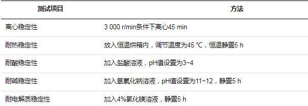 氨基改性硅油柔軟劑根據(jù)紡織物處理需要的不同,接觸到酸堿度、溫度等條件都不同,而無論是什么樣的條件,都要求氨基改性硅油柔軟劑具有極強(qiáng)的穩(wěn)定性,不能出現(xiàn)水油分離現(xiàn)象。測(cè)試項(xiàng)目如表3所示。