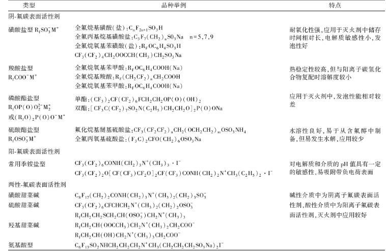 表1氟碳表面活性劑類型及特性