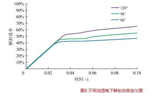 圖8不同潤(rùn)濕角下解封效率變化圖