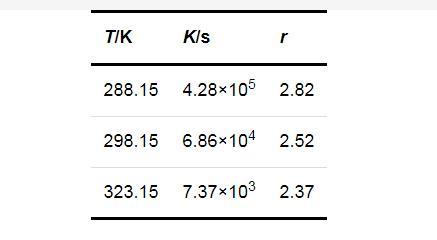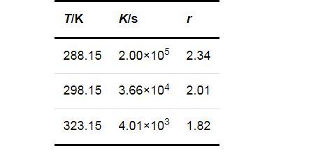 式中:K和r均為方程參數(shù),可由實驗數(shù)據(jù)回歸得出.將圖1的數(shù)據(jù)回歸結(jié)果列于表1.進一步說明了過飽和度對成核誘導(dǎo)期的影響在較低的溫度下更為顯著.