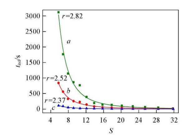 成核誘導(dǎo)期與過飽和度的半經(jīng)驗關(guān)系式[33]如下: