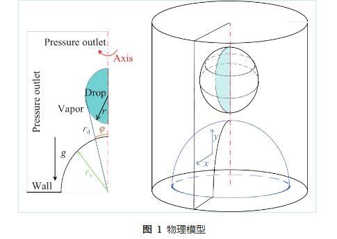 雖然,很多學(xué)者對(duì)Leidenfrost現(xiàn)象進(jìn)行了一定研究,但是大部分研究成果聚焦于高溫平面上的液滴動(dòng)力學(xué)與傳熱特性,而非平面上Leidenfrost現(xiàn)象的研究非常有限。但是,液滴撞擊高溫曲面廣泛存在于電子工程、機(jī)械工程、動(dòng)力工程、化學(xué)工程等領(lǐng)域。如液滴撞擊高溫球面,常見(jiàn)于流化催化裂化和流化焦化等工藝,這一過(guò)程影響著多種過(guò)程系統(tǒng)的性能,尤其是對(duì)于生產(chǎn)更有價(jià)值的汽車(chē)燃料具有重要意義。鑒于此,本文進(jìn)一步探究液滴與高溫球面撞擊過(guò)程中液滴的Leidenfrost現(xiàn)象,采用數(shù)值模擬方法進(jìn)行研究,使用Fluent軟件構(gòu)建了二維軸對(duì)稱(chēng)數(shù)值模型,采用VOF模型及Lee模型,分析液滴撞擊高溫球面的動(dòng)力學(xué)特性與傳熱特性,探討Leidenfrost現(xiàn)象的機(jī)理及各因素的影響規(guī)律。