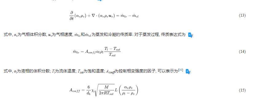 和為蒸發(fā)和冷凝的傳質(zhì)率。對(duì)于蒸發(fā)過(guò)程,傳質(zhì)表達(dá)式為