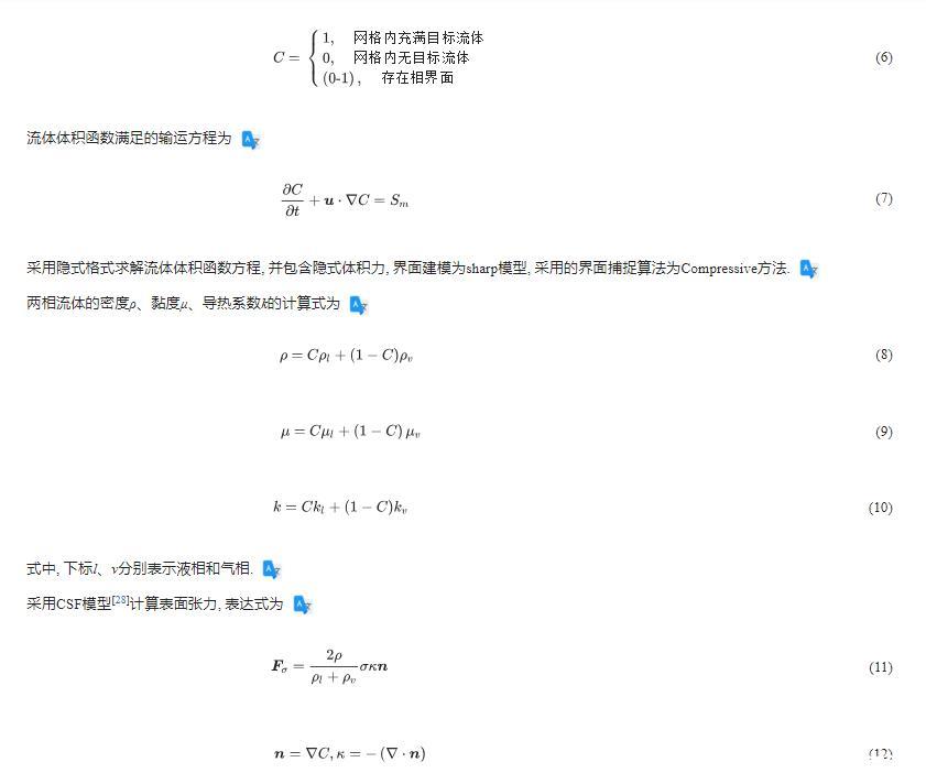 式中,db為液體蒸發(fā)時(shí)產(chǎn)生的氣泡直徑;χ表示液體表面吸附蒸氣分子的量,為調(diào)節(jié)系數(shù);M為摩爾質(zhì)量;R為通用氣體常數(shù),8.314 J/(mol·K);L為蒸發(fā)潛熱;在本文中,Acoeff取值為500.