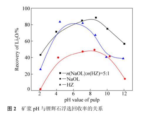 圖2礦漿pH與鋰輝石浮選回收率的關(guān)系