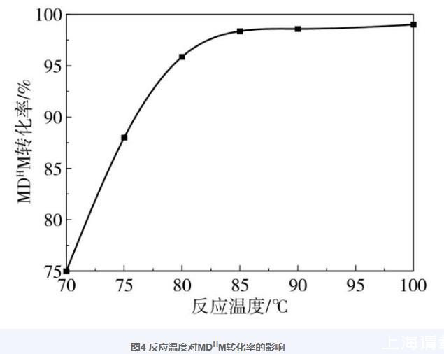 圖4反應(yīng)溫度對(duì)MDHM轉(zhuǎn)化率的影響