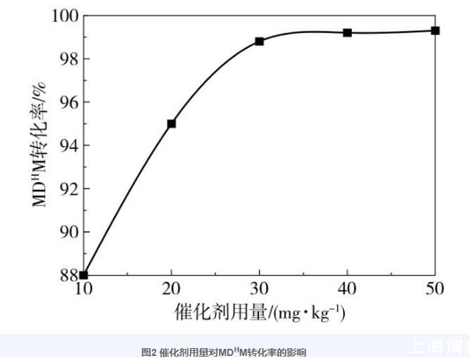 圖2催化劑用量對(duì)MDHM轉(zhuǎn)化率的影響
