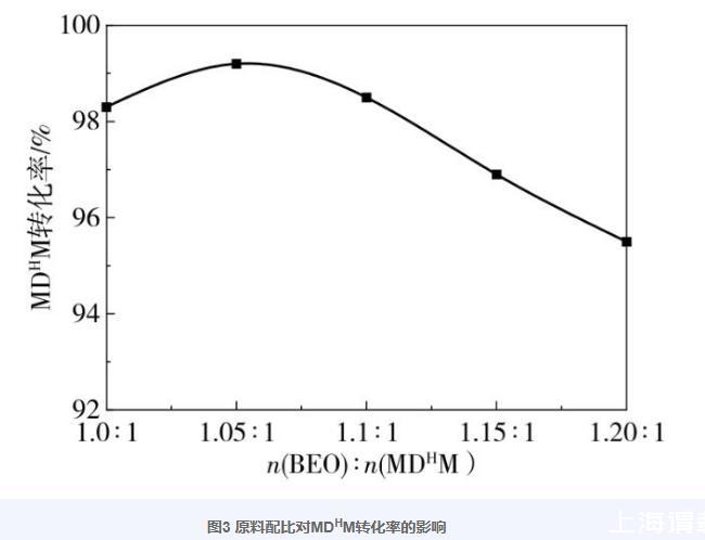 圖3原料配比對(duì)MDHM轉(zhuǎn)化率的影響