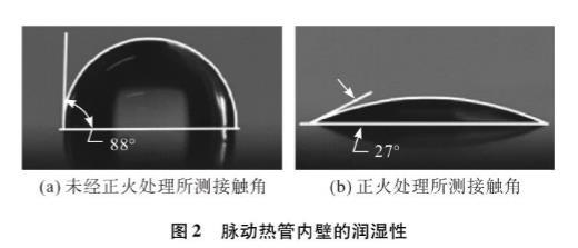 Qu等研究發(fā)現(xiàn),當(dāng)毛細(xì)管內(nèi)表面被包覆或被制造的有空腔或粗糙度時,啟動振蕩運(yùn)動所需的過熱溫度和熱量降低,脈動熱管更容易啟動。Hao等研究了超親水和親水表面對脈動熱管傳熱性能和液塞運(yùn)動的影響。