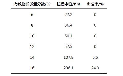 表2有效物質(zhì)質(zhì)量分?jǐn)?shù)對產(chǎn)品穩(wěn)定性的影響