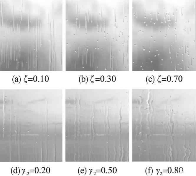 在未來工作中,將繼續(xù)對玻璃窗上水滴的運動控制進行研究,包括玻璃窗表面粗糙度對水滴尾部褪色的影響,玻璃窗平移或旋轉(zhuǎn)對水滴運動行為的影響等,完善水滴運動細節(jié),進一步在流固界面動力學(xué)模擬方面做有益探索。