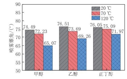 圖7環(huán)境溫度對(duì)醇類燃料噴霧錐角的影響