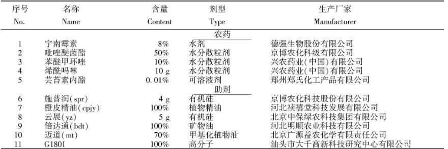 1.1.1藥劑防治辣椒病害常用的5種農藥和6種表面活性劑的相關信息詳見表1。