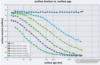 在一些如噴涂,發(fā)泡,清潔,印刷,乳化或涂層過程中,界面形成非常快,在這些過程中不僅僅只有表面張力的平衡值起決定作用,界面形成的動力學(xué)部分也存在。表面活性劑中的分子移動已經(jīng)成為表面或界面張力形成的重要因素。
