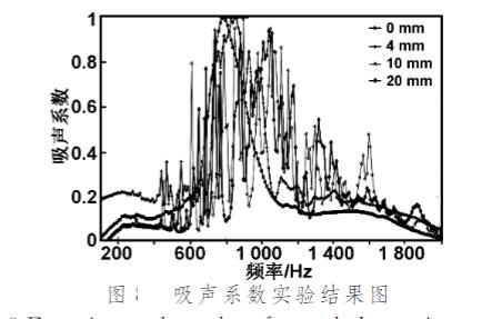 使用10mm后腔,半徑30mm的彈性薄膜分別施加0 mm,4 mm,10 mm,20 mm的拉伸(以改變表面張力),并在薄膜中心粘結(jié)直徑5mm、厚度2mm的質(zhì)量塊。測(cè)量吸聲系數(shù)。
