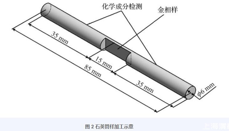 每個石英管樣長度約為85 mm,直徑約為6 mm,試樣加工如圖2所示。取中間位置制備金相樣;取兩頭中光潔度較好、致密度較高的一頭進(jìn)行表面磨光,車取直徑為4 mm的氧氮氣體棒;最終余料取屑用于分析鋼中剩余主要元素的質(zhì)量分?jǐn)?shù)。金相樣經(jīng)過線切割、精細(xì)磨拋后,用ASPEX掃描電鏡檢測試樣,并對掃描結(jié)果進(jìn)行分析,統(tǒng)計每個試樣中氧化物夾雜的數(shù)量密度和平均尺寸。