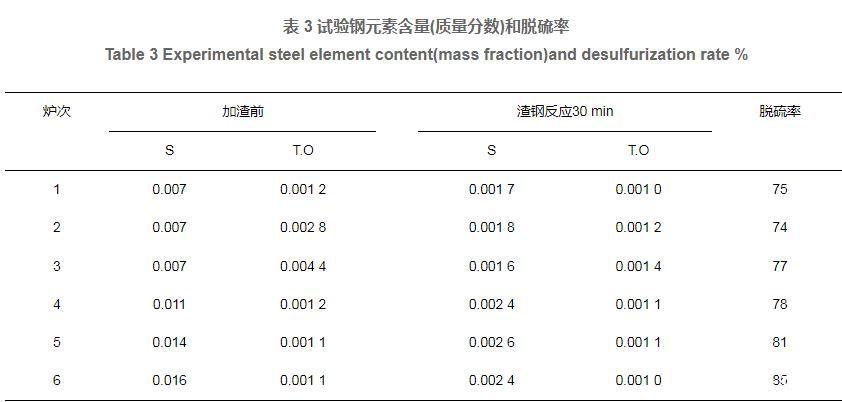 表3試驗鋼元素含量(質(zhì)量分?jǐn)?shù))和脫硫率