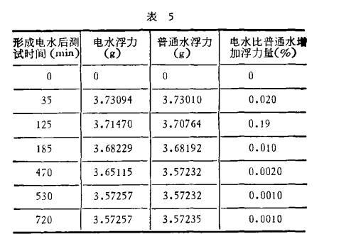 至于電水時(shí)間效應(yīng)的機(jī)理問題,特別是浮力變化大的范圍和緩慢變化范圍和水分子及水中雜質(zhì)儲(chǔ)能的時(shí)間長短有何關(guān)系,還需要從實(shí)驗(yàn)和理論上進(jìn)一步研究。