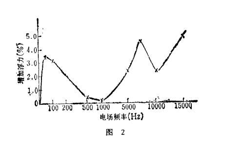 浮力和電場頻率之間關(guān)系曲線見圖2。