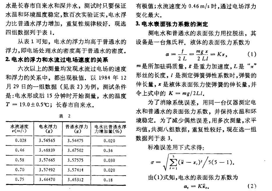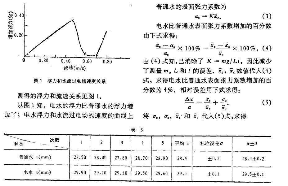 結(jié)果,電水比普通水表面張力系數(shù)增加的百分?jǐn)?shù)為4%±1%。