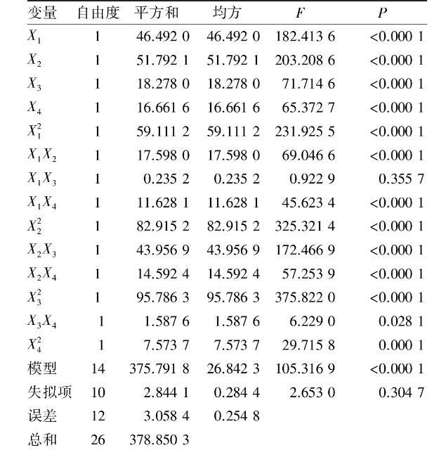 2.2.1響應(yīng)面試驗設(shè)計及結(jié)果