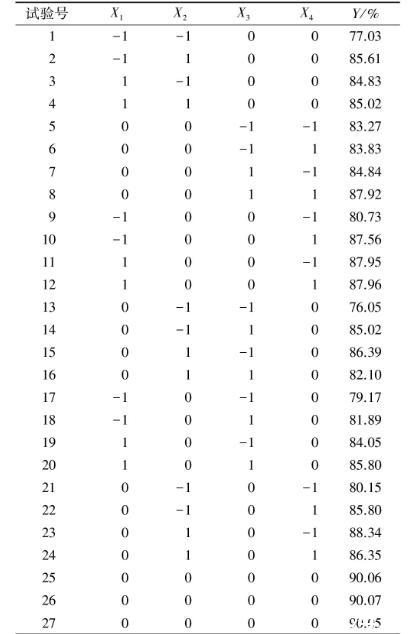 表1響應(yīng)面試驗因素水平