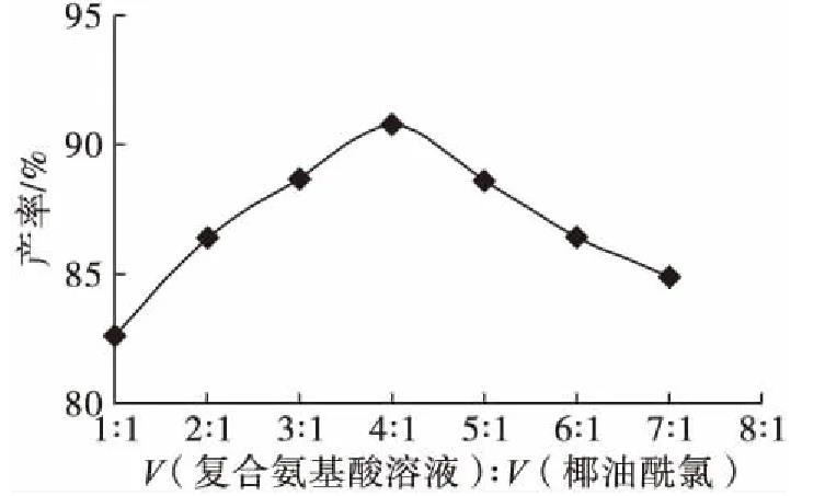 2.1.1復(fù)合氨基酸溶液與椰油酰氯體積比對產(chǎn)率的影響