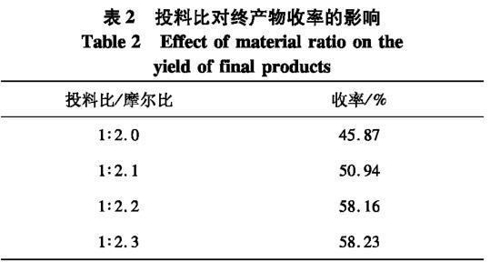 固定反應(yīng)溫度90℃,反應(yīng)時間14 h,考察投料比對終產(chǎn)物GAC-312收率的影響,結(jié)果見表2。