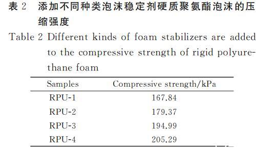 表2添加不同種類(lèi)泡沫穩(wěn)定劑硬質(zhì)聚氨酯泡沫的壓縮強(qiáng)度